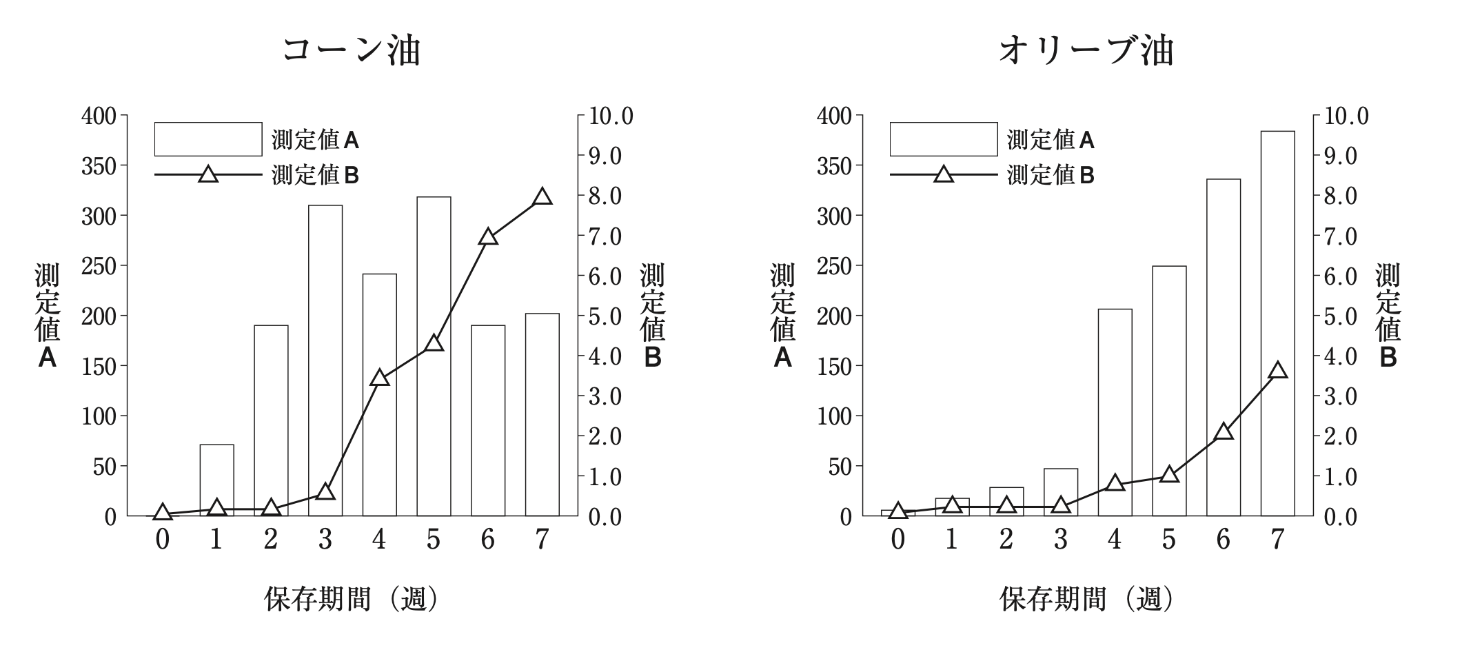 - 測定値Aは過酸化物価、測定値Bは酸価である。