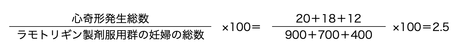 - ラモトリギン製剤服用群全体では、出生100人あたり2.5人に心奇形が発生しています。