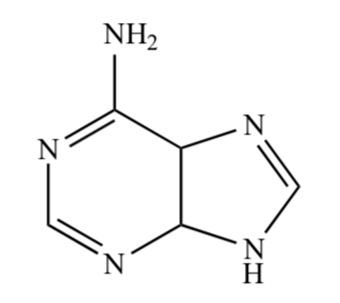 アデニンは、2つの環(イミダゾール環とピリミジン環)が融合したプリン骨格を有する。