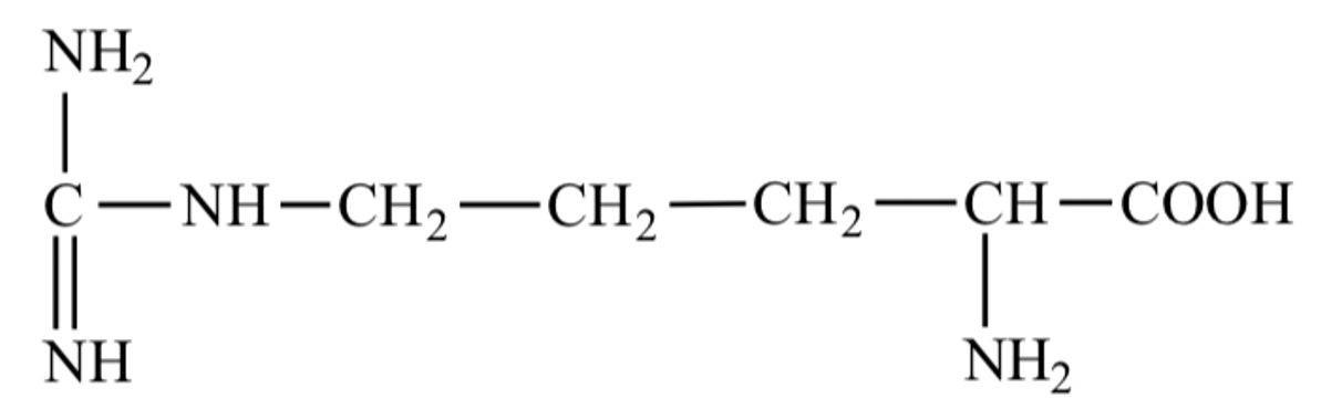 アルギニン(Arg, R)は、タンパク質を構成するアミノ酸の一つで、化学式は C6H14N4O2 である。