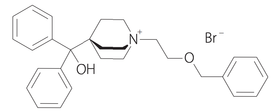 長時間作用性の選択的ムスカリン受容体拮抗薬であり、気管支平滑筋に存在するムスカリン受容体へのアセチルコリンの結合を競合的に阻害することにより気管支平滑筋収縮を抑制する。