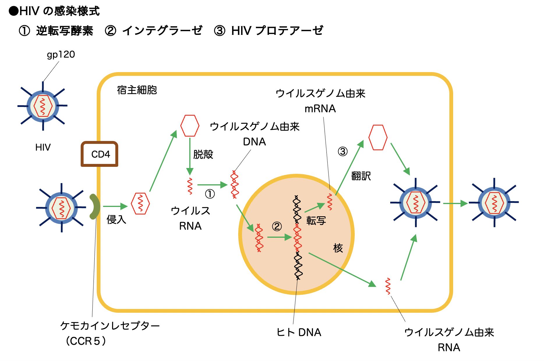 - 逆転写酵素を持ち、RNAをDNAに変換し宿主細胞のゲノムに組み込むことで、長期的な感染を維持する。