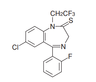 - 1位にトリフルオロエチル基を有するベンゾジアゼピン系薬で中・長時間型薬剤に分類される睡眠障害改善薬である