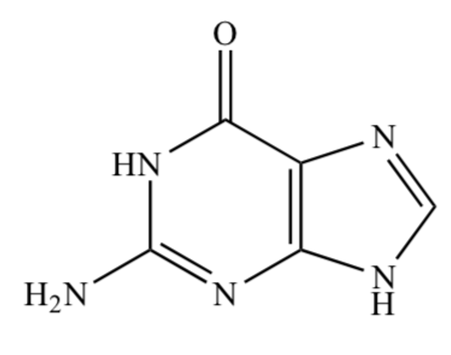 グアニンは、プリン骨格を持ち、イミダゾール環とピリミジン環が融合した化合物で、カルボニル基(C=O)とアミノ基(NH₂)を有する。 - 分子量: 151.13 g/mol