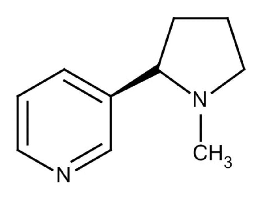 ニコチンは、化学式 C₁₀H₁₄N₂ で示されるアルカロイドであり、主にタバコの葉に含まれている自然由来の化学物質である。ニコチンは中枢神経系に作用し、主に喫煙やタバコ製品を通じて人体に摂取される。