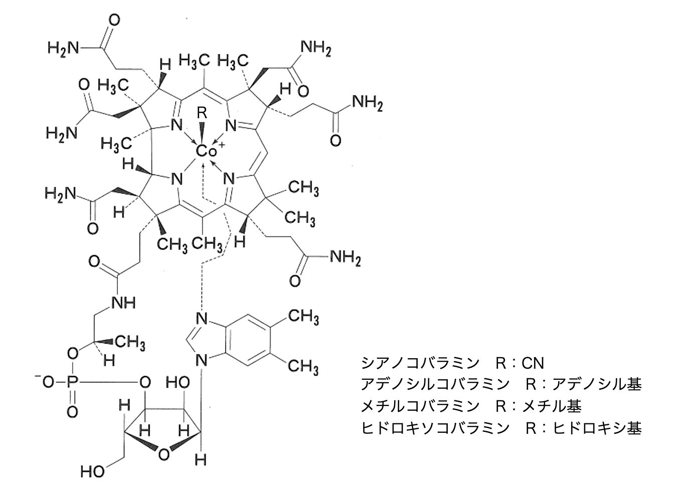 - ビタミンB12は、神経細胞を正常に保つために重要である。特に、神経細胞の膜を構成するミエリンという物質の合成に関与する。ミエリンは神経伝達をスムーズにする役割があり、これが欠如すると神経機能に障害が生じ、感覚異常や筋肉の麻痺などが引き起こされる。
