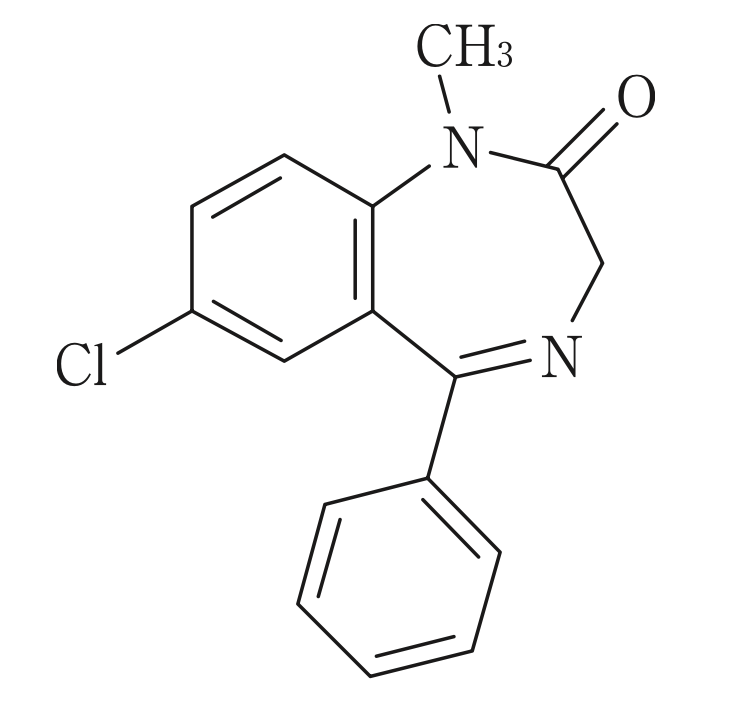 ジアゼパムは、GABAA受容体のベンゾジアゼピン系受容体に結合し、細胞外から細胞内へのCl-の流入を促進することで過分極誘起作用(神経機能抑制作用)を促進する。