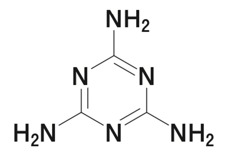 - 構造: トリアジン環(炭素3つ、窒素3つからなる環構造)に3つのアミノ基(-NH₂)が結合した構造。