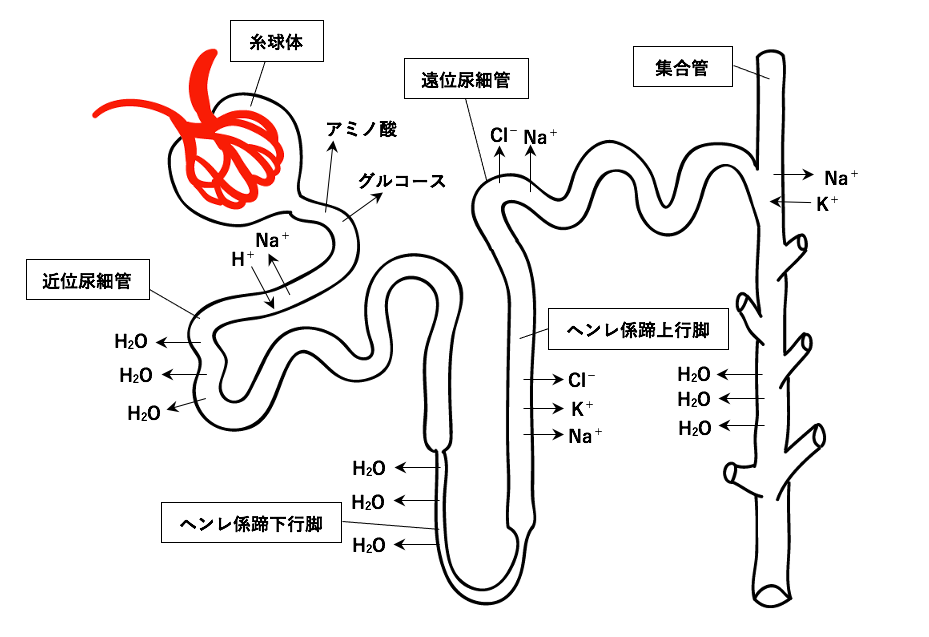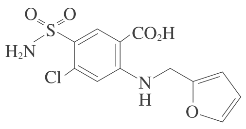 ヘンレ係蹄上行脚の管腔側からNa+–K+–2Cl-共輸送系を抑制し、対向流増幅系を抑制することで利尿作用を示す