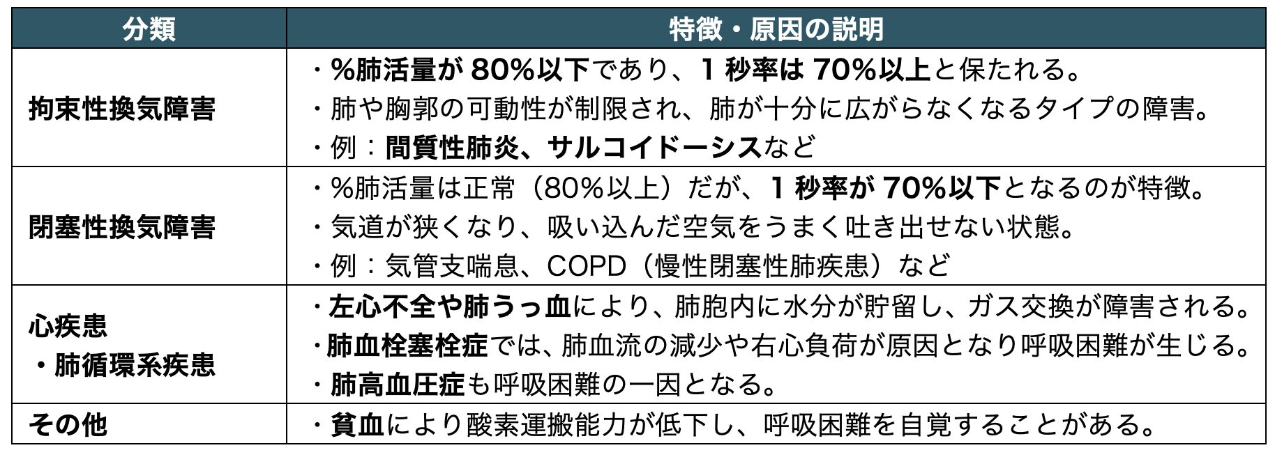 呼吸時に強い努力を必要とし、不快感を伴う状態を「呼吸困難」という。これは、呼吸器疾患や循環器疾患に共通してみられる症状であり、特に動脈血中の二酸化炭素分圧の上昇により、呼吸性アシドーシスを引き起こすことがある。