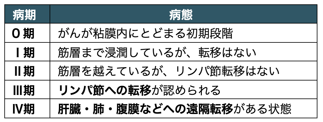 病期(ステージ)は、がんの進行度を表すもので、治療法選択や予後の予測に用いられる。