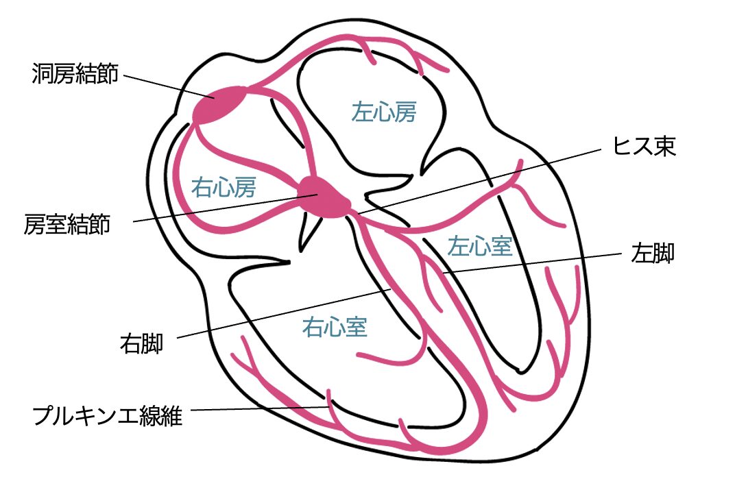 心臓は1分間に60〜70回拍動しており、全身に血液を送り出している。通常、右心房に存在する洞房結節で発生した興奮が心房に伝わり、左右の心房が収縮する。その後、房室結節→ヒス束→右脚・左脚→プルキンエ線維の順に興奮が伝えられ、心室が収縮することで血液が送り出される。