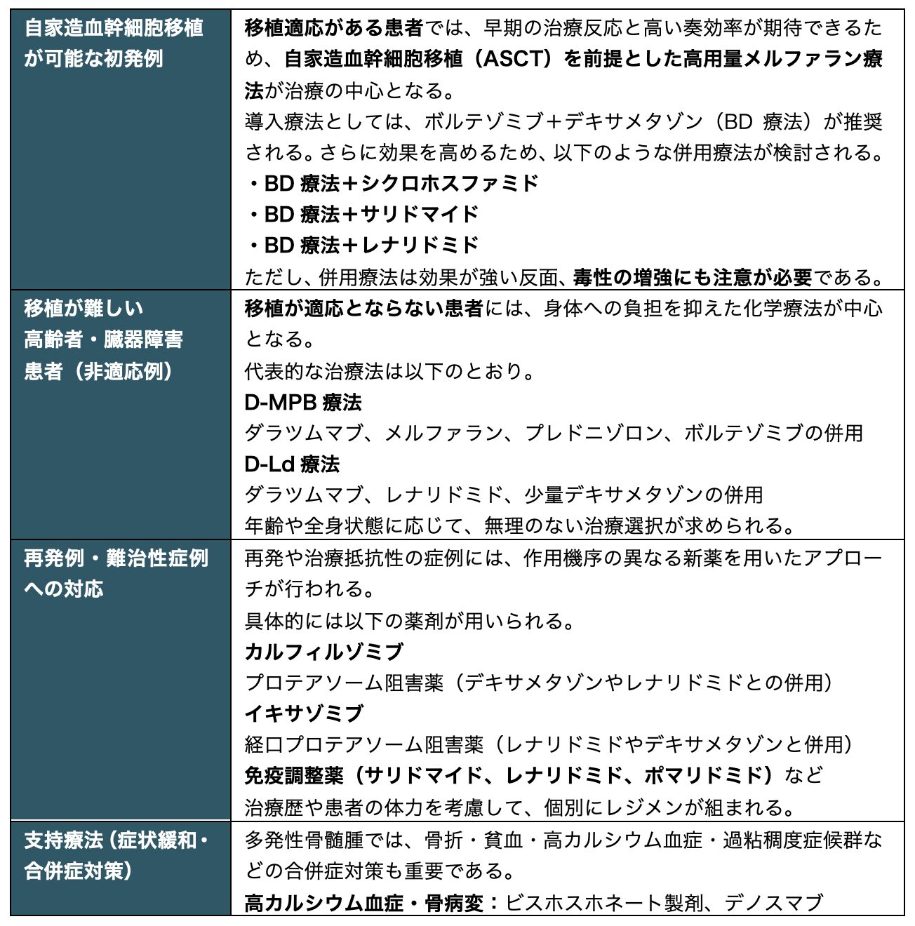多発性骨髄腫は、Bリンパ球系列の最終分化段階にある形質細胞が腫瘍化し、単クローン性に増殖する疾患である。腫瘍化した形質細胞(骨髄腫細胞)は、異常免疫グロブリン(Mタンパク)を過剰に産生する。Mタンパクの蓄積により、骨病変や腎障害、免疫抑制など多彩な症状が出現する。