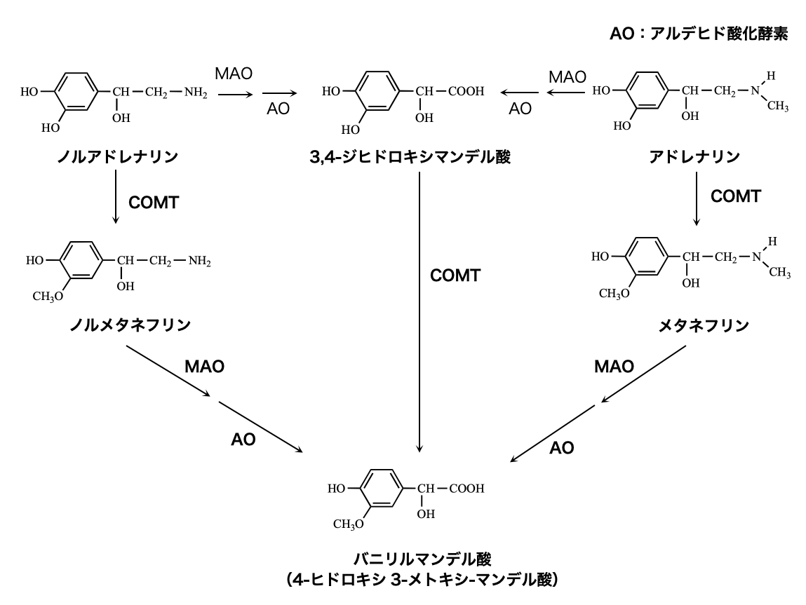 さらに代謝されて → バニリルマンデル酸(VMA)