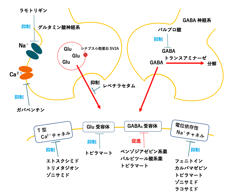 Na+チャネルを頻度依存的かつ電位依存的に抑制することによって神経膜を安定化させ、グルタミン酸等の興奮性神経伝達物質の遊離を抑制することにより抗痙攣作用を示す