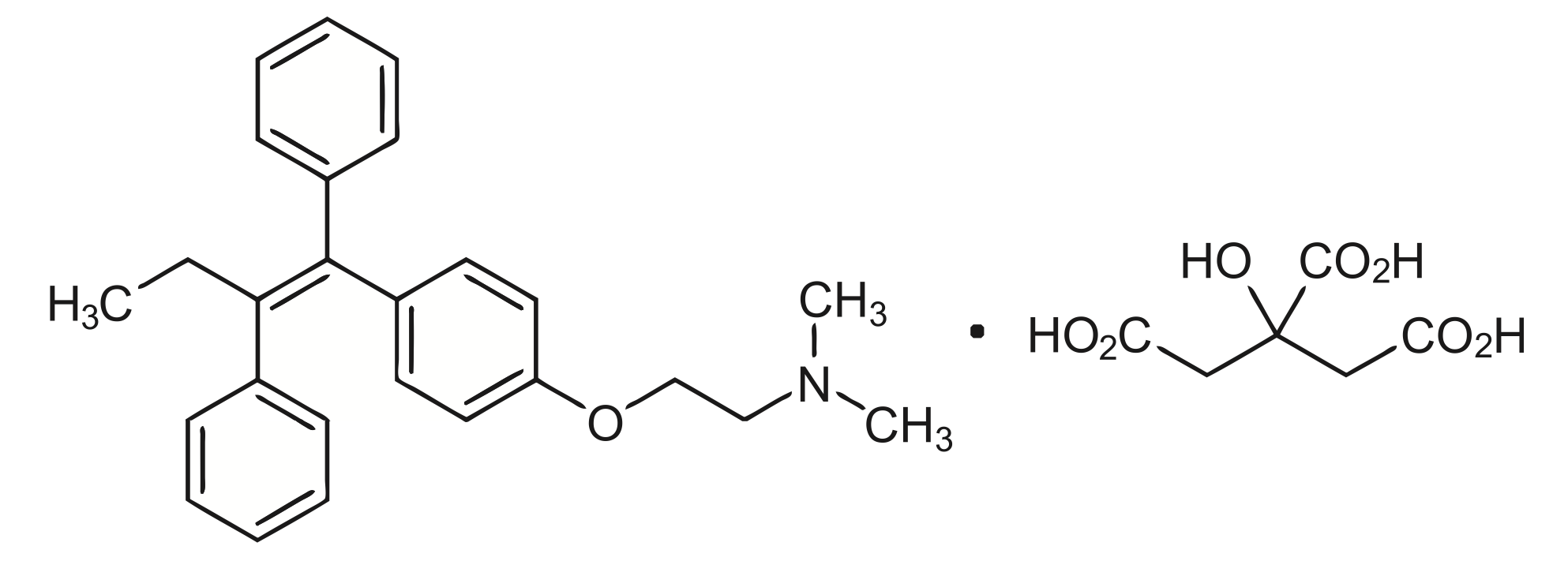 タモキシフェンは乳癌組織等のエストロゲンレセプターに対しエストロゲンと競合的に結合し、抗エストロゲン作用を示すことによって抗乳癌作用を発揮する。
