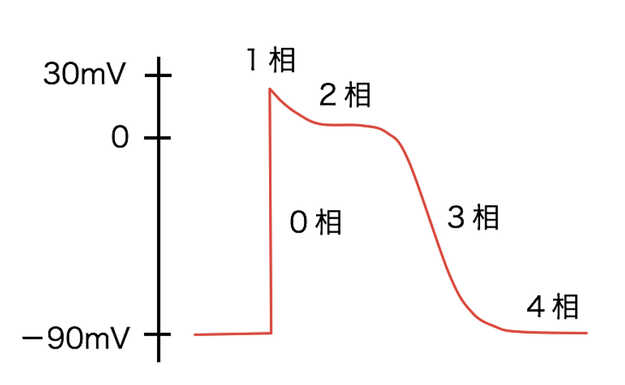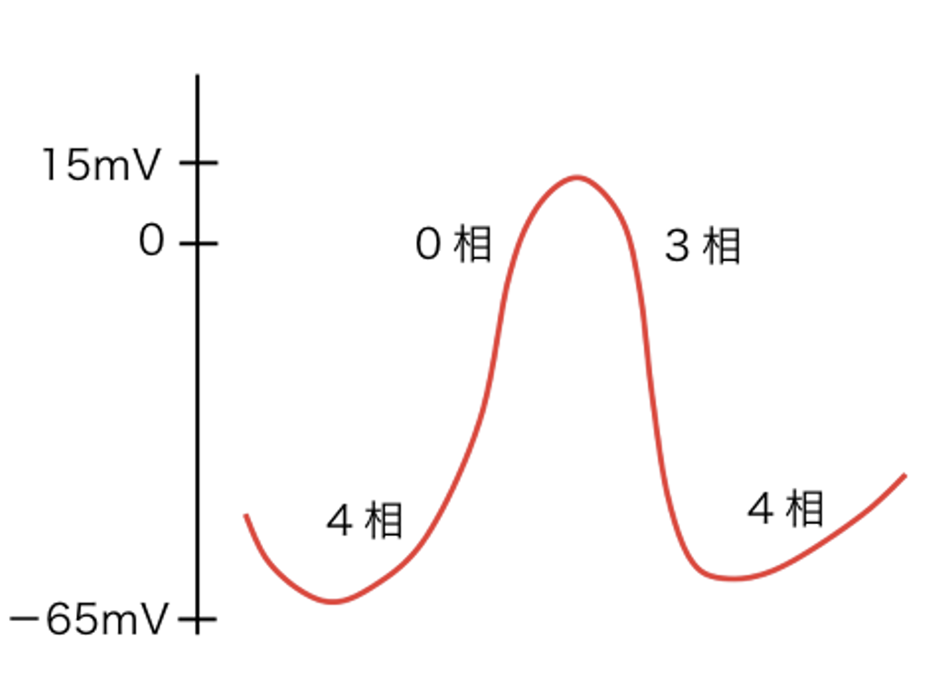 脱分極後、Kチャネルが活性化されることにより再分極が認められる。