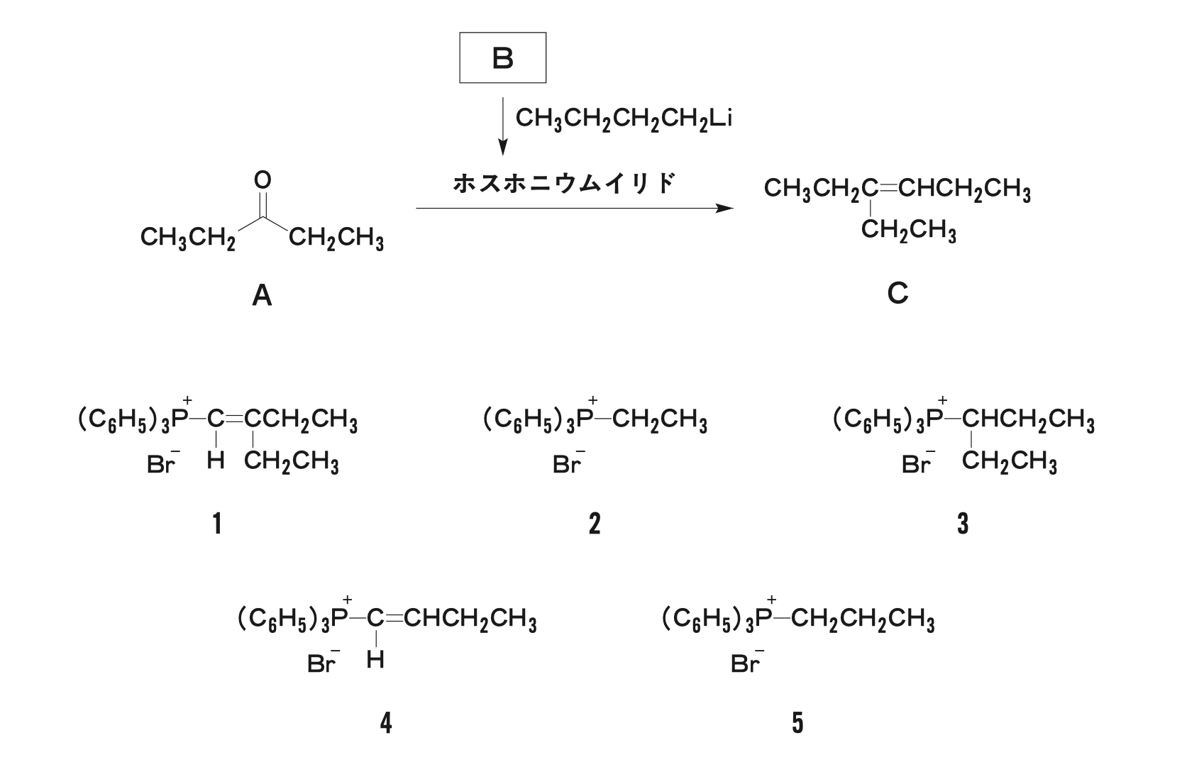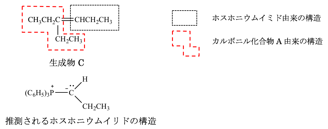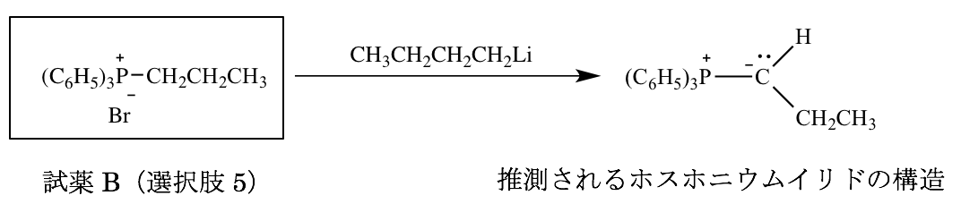 第100回薬剤師国家試験 問103 カルボニル化合物の反応 2025 1/24 第100回薬剤師国家試験 カルボニル化合物AをアルケンCに変換するのに必要な試薬Bはどれか。1つ選べ。 解答・解説 解答 5 解説 本反応は、カルボニル化合物AとホスホニウムイリドからアルケンCが生成していることから、Wittig反応であると考えられる。 生成物Cより、ホスホニウムイリドの構造を以下のように推測することができる。 推測されるホスホニウムイリドを生成するに当たっては、以下の反応が起こっていると考えられる。 第100回薬剤師国家試験 よかったらシェアしてね! URLをコピーしました! 第100回薬剤師国家試験 問102 ヒドロホウ素化ー酸化反応 第100回薬剤師国家試験 問104 電子の移動と化学反応 関連記事 第100回薬剤師国家試験 問345 計量調剤 2017年8月24日 第100回薬剤師国家試験 問344 栄養療法 2017年8月24日 第100回薬剤師国家試験 問343 メタボリックシンドローム 2017年8月24日 第100回薬剤師国家試験 問342 一般用医薬品 2017年8月24日 第100回薬剤師国家試験 問341 熱中症 2017年8月24日 第100回薬剤師国家試験 問340 向精神薬の取扱い 2017年8月24日 第100回薬剤師国家試験 問339 薬局製造販売医薬品(薬局製剤) 2017年8月24日 第100回薬剤師国家試験 問338 病棟での問題点に対する薬剤師の対応 2017年8月24日 コメント コメント一覧 (1件) […] 第100回 問103 […] 返信 コメントする コメントをキャンセルコメント ※ 名前 メール サイト
