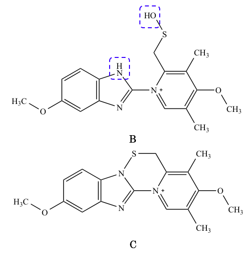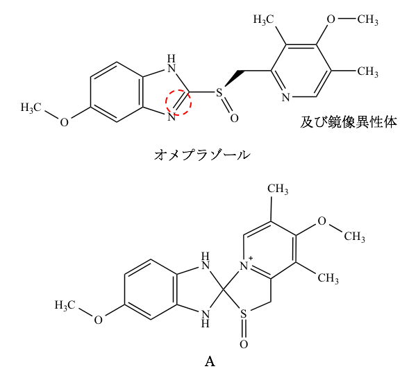 - Aはオメプラゾールの分子内置換反応によって生成する。