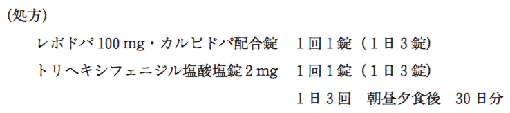 - レボドパ100 mg・カルビドパ配合錠を増量する。