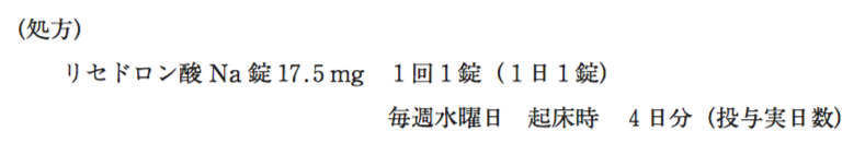 - 牛乳中の油脂成分によりリセドロン酸の溶解が促進され、良好に吸収される。