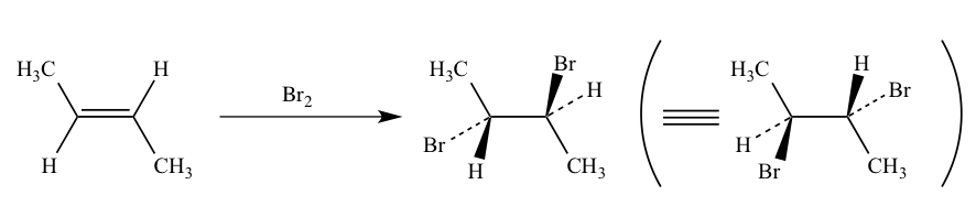 アルケンに対する臭素の付加反応は、トランス(アンチ)付加で進行する。