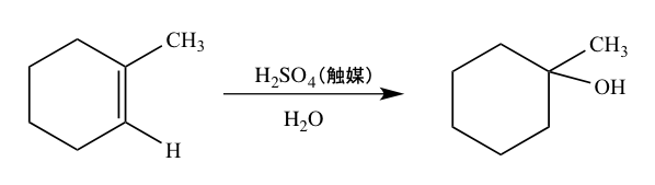 酸性条件下におけるアルケンに対する水の付加反応は、Markovnikov則に従って進行する。