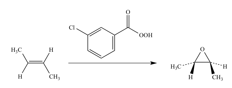 アルケンに対するm−クロロ過安息香酸(過酸)の付加反応は、シン付加で進行する。