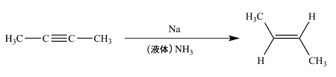 アルキンを液体アンモニア中、金属ナトリウムで処理すると、trans−アルケンを生成する。