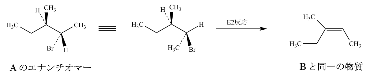 - 出発物質として化合物Aのエナンチオマーを用いると、化合物Bの幾何異性体が主生成物として得られる。