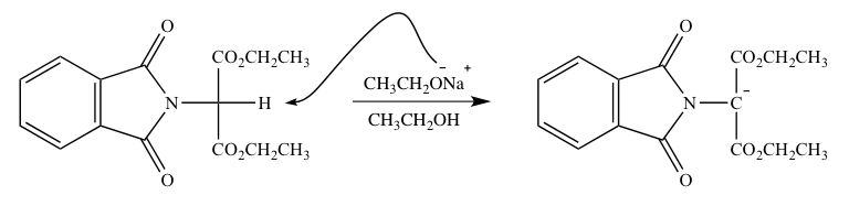 1)生成したN−置換フタルアミドをCH3CH2OH中、CH3CH2ONaで処理するとカルボニルのα位のプロトン(H+)が脱離し、カルボアニオンを生成する。