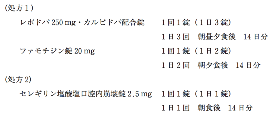 56歳女性。パーキンソン病及び慢性胃炎で治療中のため、保険薬局に処方箋を持参した。処方1を継続服用していたが、振戦が改善されないため、本日より処方2が追加された。薬剤師は服薬指導の際に、患者にチーズを食べすぎないように指導した。