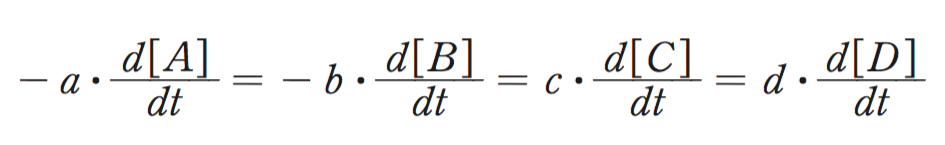 -1/a×Aの変化速度=-1/b×Bの変化速度=1/c×Cの変化速度=1/d×Dの変化速度