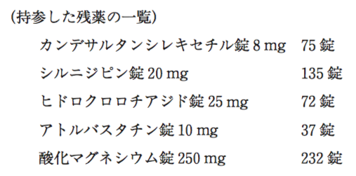 - シルニジピン錠20 mgが多く残っているが、家族からの説明によると症状が安定しているようなので、医師に処方の妥当性を相談した。