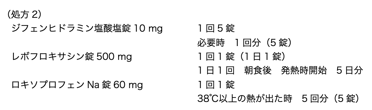 以前から処方されている処方2の内容を以下に示す。
