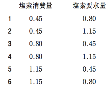 塩素要求量:初めて遊離残留塩素が認められる塩素注入量