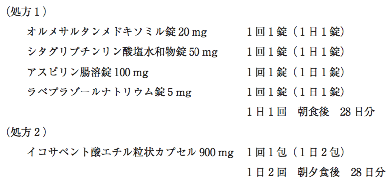 66歳男性。内科で処方された以下の薬剤(処方1、2)を指示通りに服用していた。別の病院の泌尿器科を受診し、前立腺肥大症と診断された。泌尿器科で処方された前立腺肥大症治療薬を自宅で服用したところ、ひどい立ちくらみが起こり救急車で搬送され、血圧降下が原因と診断された。