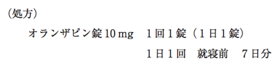26歳男性。統合失調症の診断を受け、ハロペリドールを処方されていた。手の震え、体のこわばりやアカシジア(静座不能)などの副作用の出現により服薬を自己中断するため、入退院を繰り返している。3ヶ月前から以下の処方に変更となった。