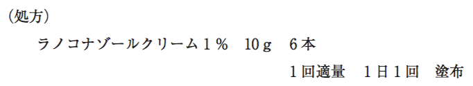 56歳男性。以下の処方箋を持って薬局を訪れた。足裏と足側面にかゆみ、水疱、皮膚の剥離などの症状が出現し、皮膚科外来を受診したとのことであった。