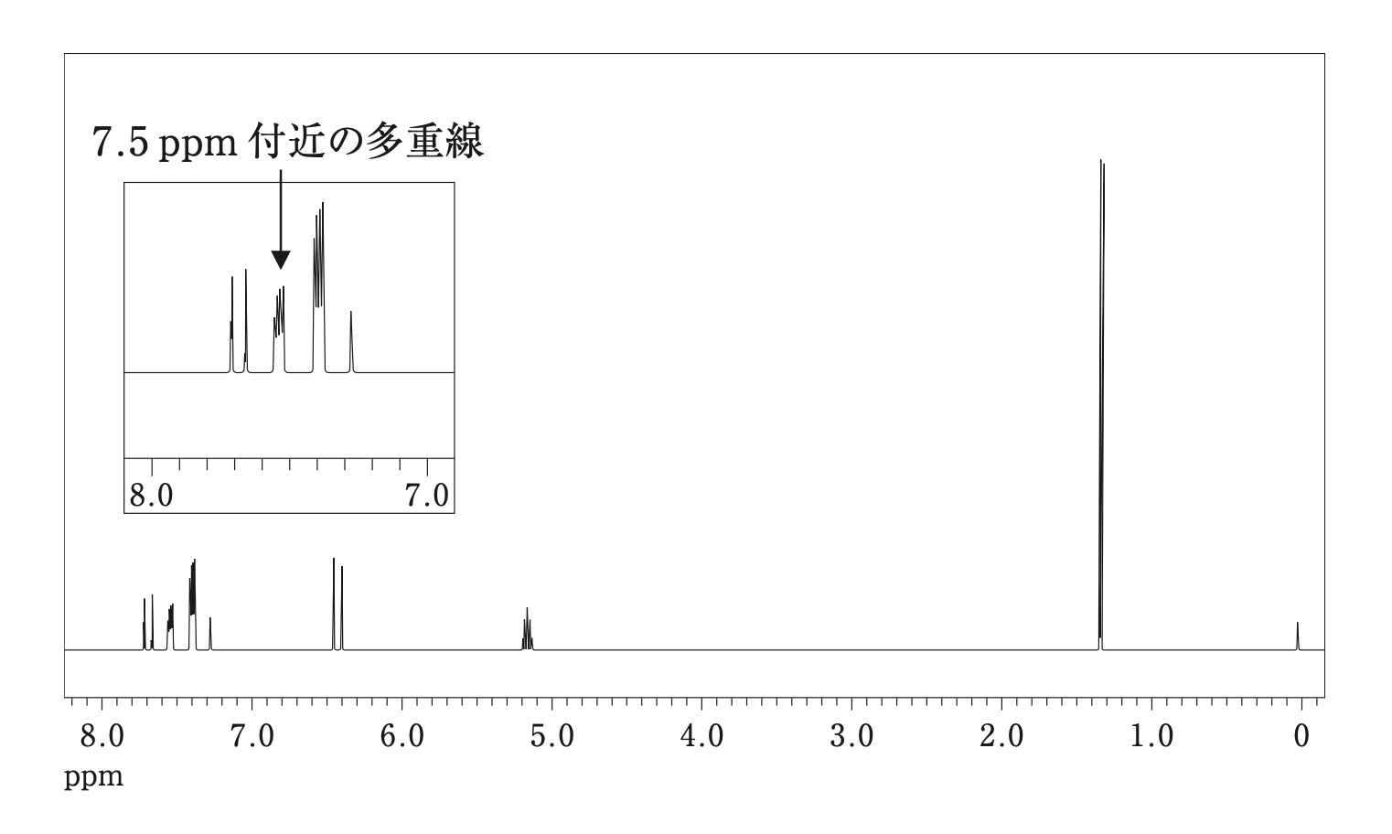 - 矢印で示す7.5ppm付近の多重線の積分値は3H分ある。