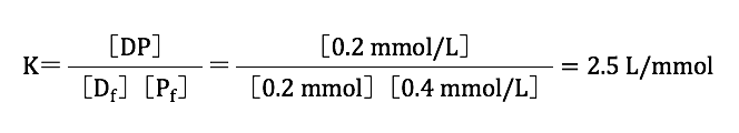 アルブミン1分子に対して薬物が1分子結合することから、結合型タンパク質濃度は結合型薬物濃度と等しくなる。そのため、遊離型のアルブミン質は、0.6 mmol(全アルブミン濃度)-0.2 mmol/L=0.4 mmol/Lとなる。