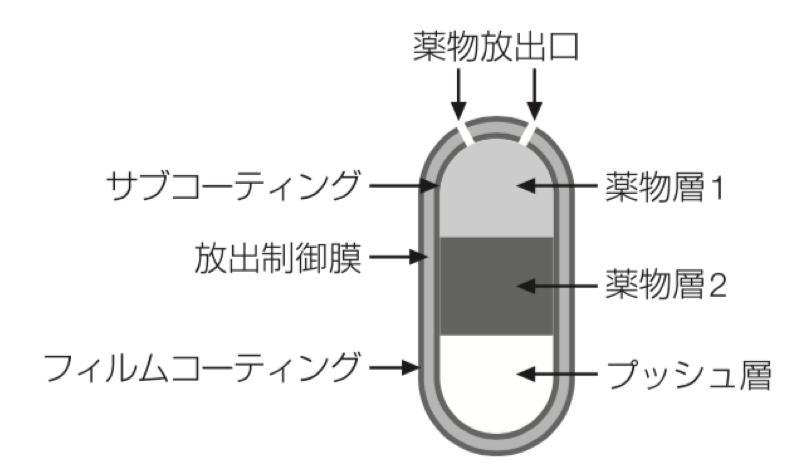 - パリペリドンを含む浸透圧ポンプ型製剤は、薬物とそれを押し出す駆動力となる電解質を高分子マトリックスに分散させた徐放性製剤である。