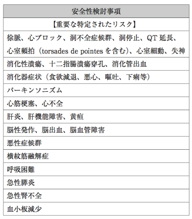 ドネペジル製剤の医薬品リスク管理計画書(RMP)の概要から、下記のような 「重要な特定されたリスク」が確認できた。これらの回避のために、薬剤師の対応 として適切なのはどれか。2つ選べ。