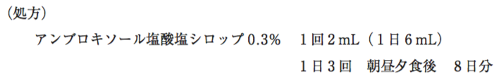 イラストより3mL計り取ることができる目盛付スポイトを添付しているため、計量カップ、投薬びんにおける服用量の目盛は必要ない。また、薬剤の総量=6 mL/日×8日=48mLであることから、薬剤の総量も問題ない。
