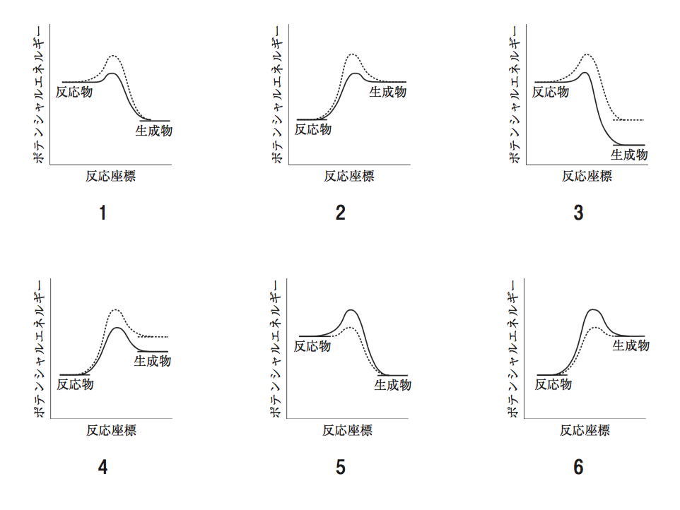 上記より、「選択肢1」が適切な反応座標とポテンシャルエネルギーの関係を表す図となる。
