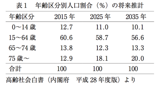- 表1から、2035年における老年化指数は約200%になると予測される。
