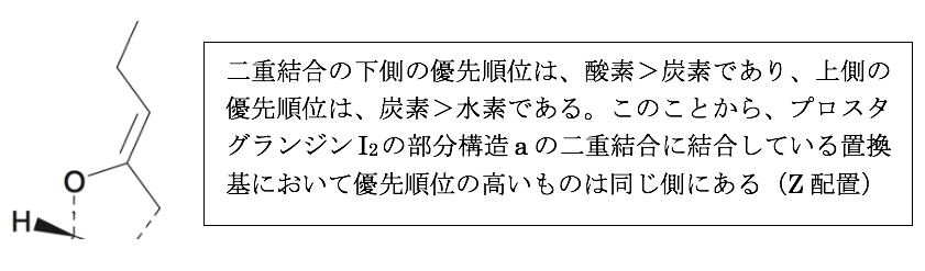 - プロスタグランジンI2の部分構造aの二重結合の立体化学はE配置である。