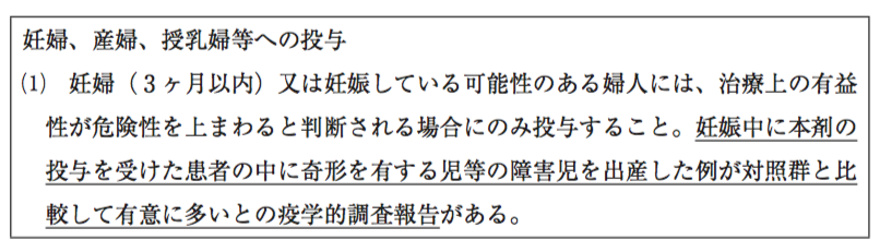 ジアゼパム錠を常用している32歳女性患者から主治医に、妊娠と薬の服用について相談があった。相談を受けた医師がジアゼパム錠の添付文書を確認したところ、次の記載があった。