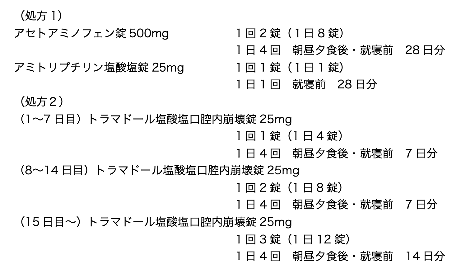 - アセトアミノフェンを中止し、オキシコドンに切り替える。