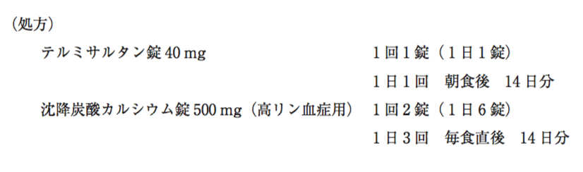65歳男性。花粉症のため近医を受診した。医師が服用中の薬について確認したところ、以下の処方による治療を受けていることがわかった。そこで、医師は地域連携の会議等でよく顔を合わせている薬剤師に電話して、抗アレルギー剤の選択について相談した。